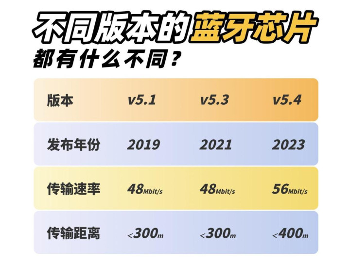 首先是蓝牙版本,尽量选新一点的,比如现在的蓝牙 5.4 就挺不错。这个版本连接快,还稳,用的时候不容易断连。给大家看组数据就明白了,不同版本差别还挺明显: